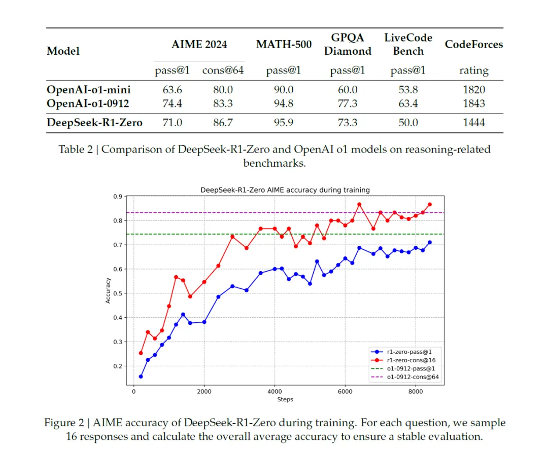 而此次 DeepSeek 發布的論文《DeepSeek-R1: Incentivizing Reasoning Capability in LLMs via Reinforcement Learning》中,其分別開發了 DeepSeek-R1-Zero 以及 DeepSeek-R1-Zero 模型,其中 R1-Zero 的創新在於其省略了傳統 LLM model 訓練的第一個步驟 (SFT) 通過,讓模型無需借助外部數據,僅依靠其自身的推理能力,即可隨時間自我進化發展出解決問題的能力,實現從內部的自我的提升。模型出現了開始出現複雜行為,如反思 ( 回顧並重新評估之前步驟 )、探索其他問題的解法等行為,甚至如人類一樣,會思考問題時會經歷「頓悟時刻 (aha moment)」,學會為問題分配更多的思考時間。