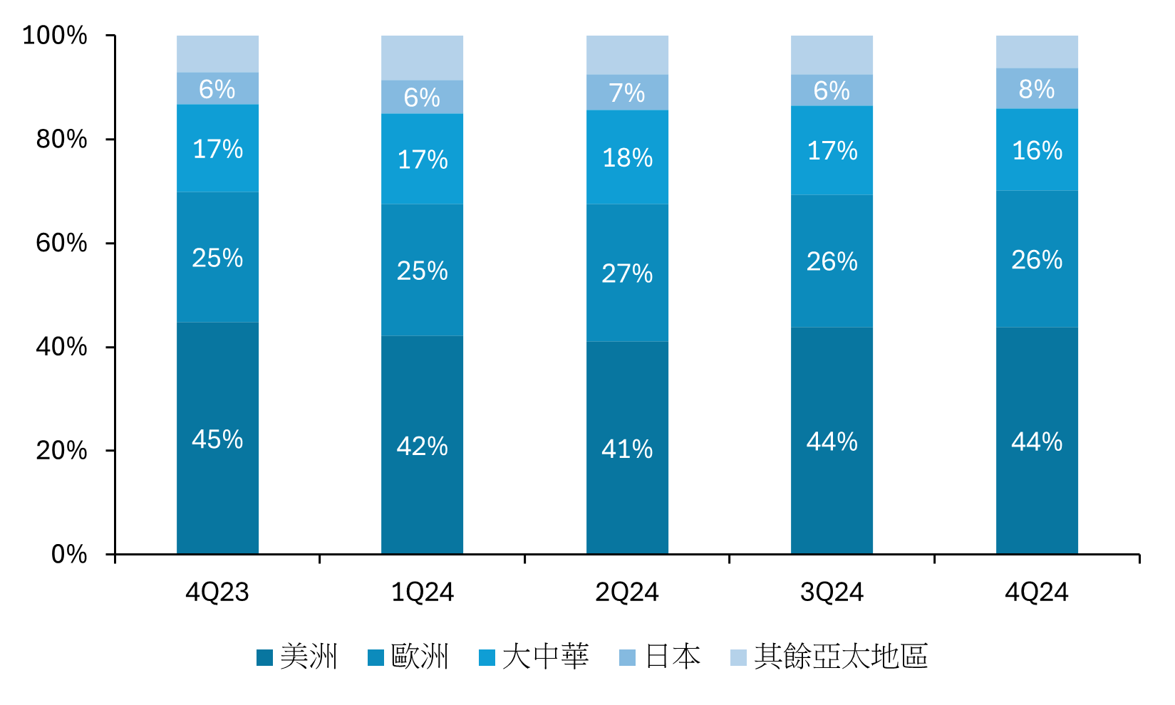 受惠於高階機型比例提升、高毛利服務收入強勁增長及成本控制,毛利率達 46.2%,略高於市場預期,但低於公司先前預測的範圍上限(45.5% ~ 46.5%)。與去年同期相比增加約 1.1%,且優於過去三年的毛利率範圍(約42% ~ 46%)。分項來看,產品毛利率為 36.3%,低於去年同期的 36.6%;服務毛利率為 74%,優於去年同期的70.9%。