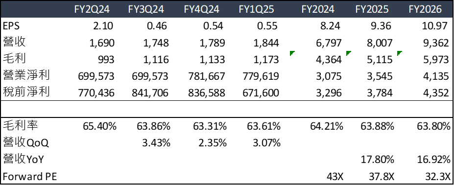 展望 3Q24,公司預期營收將落在 17.2~17.5 億,毛利率維持在 63~64%,遞延收入也將隨新產品的推出及客戶簽署的合約數增加而上升,並看好未來雲端運算市場成長保持穩定增速。