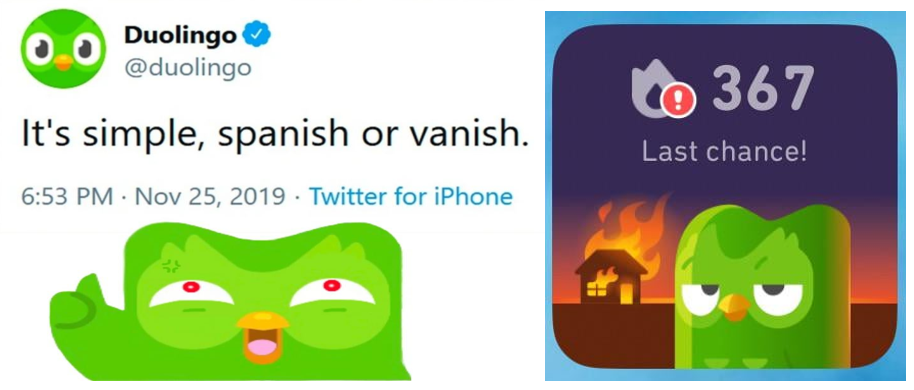 另外,Duolingo 另一個主要特色就是以情緒勒索知名的代表角色 Duo,負責「激勵」使用者每日上線進行練習。公司在本季財報也提到:平均每 5 個每日活躍用戶(DAU)裡就有 1 個已經達成連續一年以上的課程練習,顯示此手法對於用戶留存率有非常顯著的效果;而除了提高用戶留存率外,Duo 的情緒勒索提醒也被製作成各種短影音及迷因,並在社群上引起話題,因此在年輕族群中知名度非常高,口碑宣傳成果顯著。