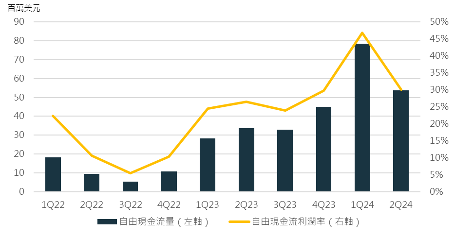 3. 財務表現佳:公司近幾季的營收、獲利率、自由現金流量皆穩定成長,自由現金流利潤率更達到 30%,超過 SaaS 平均。