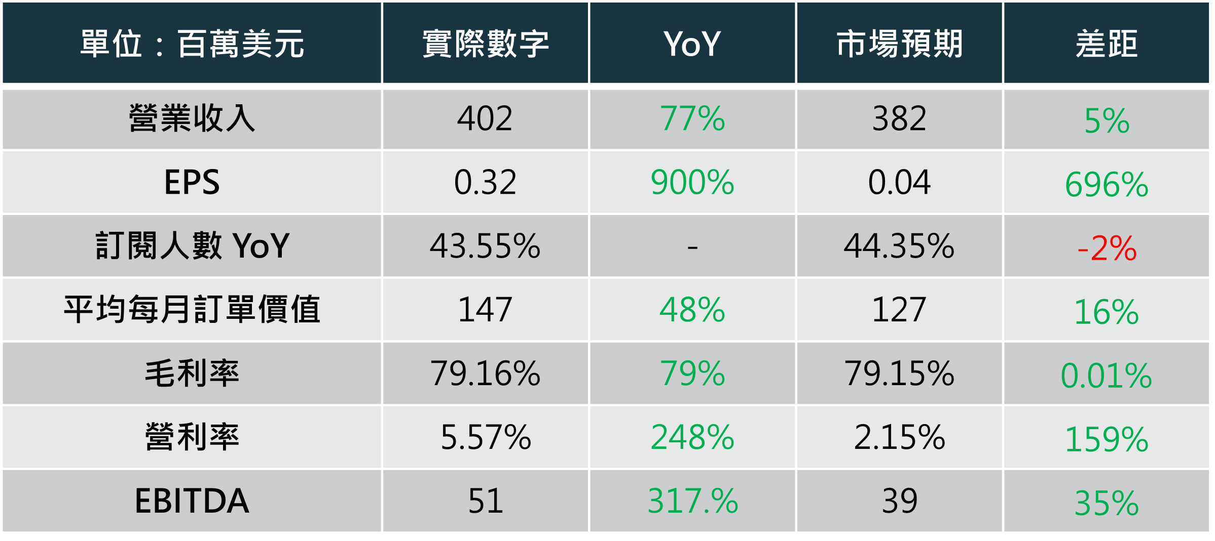 財務表現佳:營利率轉正、訂閱人數持續成長