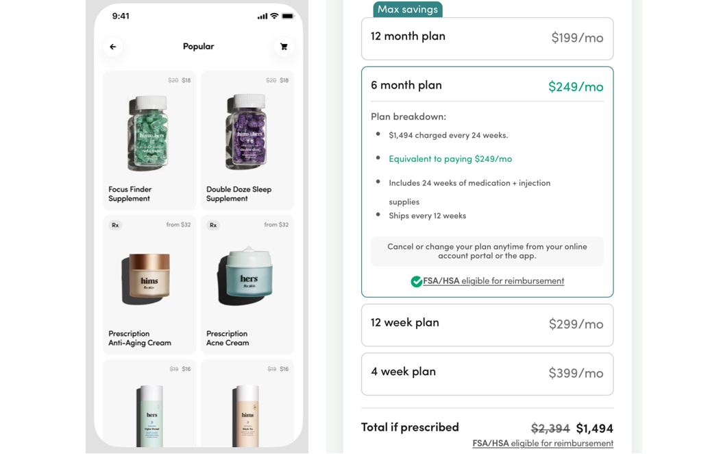 相較之下,HIMS 的訂閱方式價格透明,只需選擇需要的藥物,就無須擔心線上看診、傳訊息等被收取額外費用,也不需要保險。