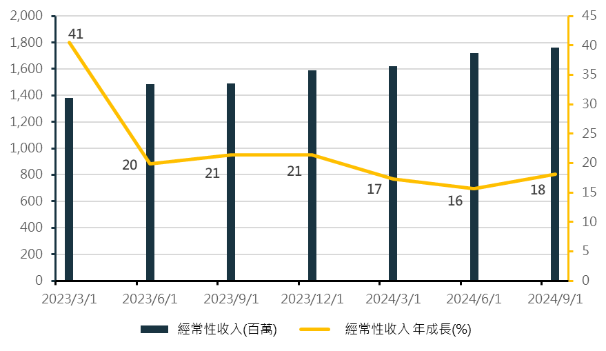 近年公司每季的經常性收入年成長率約維持在 15~20%,主要是由占比最大的儀器 & 配件需求增加所帶動,另外系統租賃的年成長也保持在 30% 以上持續擴張。