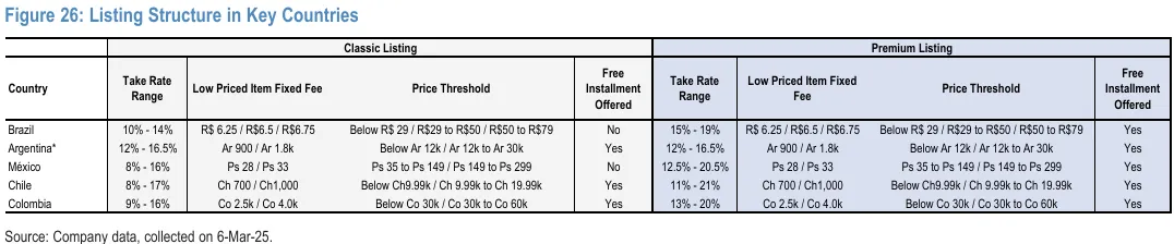 在理解其於拉丁美洲不同區域電商市場的競爭情形後,我們接下來看 MELI 是如何收費的。