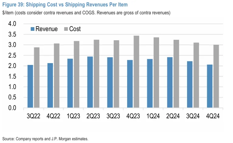 雖然 MELI 於物流的把控增進其對整體流程的控制並透過「交叉轉運」和「履行」策略,使商品處理和送達時間顯著縮短,並且降低對單一承運商的依賴,但對物流高度補貼造成負毛利貢獻對毛利潤相當於 GMV 的 -3.6%,使得當前物流業務仍為成本單位而非利潤單位。