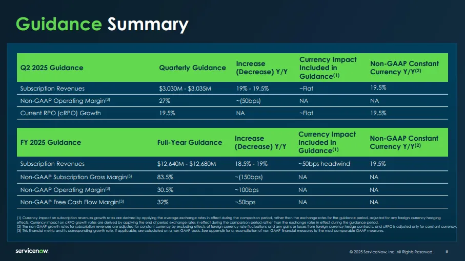 儘管需求依然強勁,但 ServiceNow 對 2025 年剩餘時間採取了審慎的態度,僅將部分收益納入全年展望,主要考量當前地緣政治所帶來潛在風險,並切入美國聯邦政府業務已針對各機構部門提供專門的解決方案,以加速數位轉型、提高透明度並改善公共服務交付。