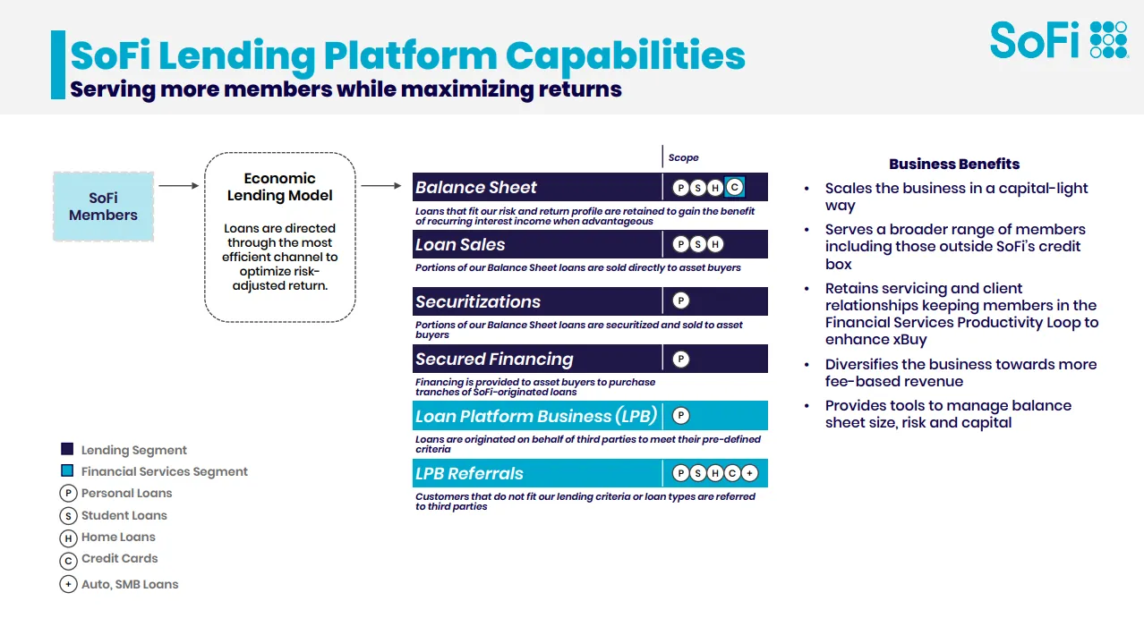 可以將 LPB 的核心理念想像成 SoFi 將現有自身平台上會員的貸款,根據合作夥伴(如 Fortress)的需求和標準外包出去,將自身貸款風險轉移到合作夥伴的賬戶中,賺取營銷、承銷等服務費用,同時保留貸款的服務權利,並且借款人仍使用 SoFi 的系統進行還款,進一步增強會員忠誠度並促進交叉銷售。