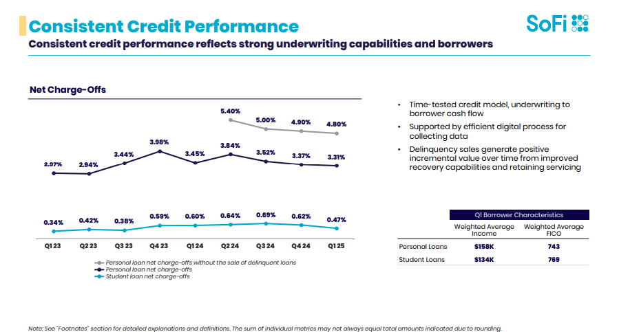 3. 全新推出的貸款平台業務(LPB),讓貸款風險轉移至合作夥伴,而 SoFi 則透過營銷、承銷與貸款服務費獲利。此模式讓 SoFi 能擴大貸款市場,增加手續費收入,同時減少信用風險與資本負擔,成為推動未來成長的新引擎。