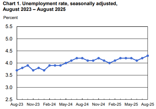 美國八月失業率上升至4.3%,非農就業下降至2.2萬