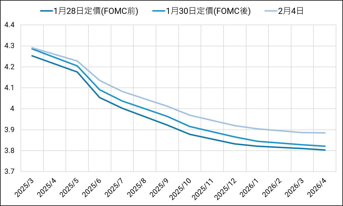 1 月 29 日會議結束後,市場對 3 月降息的機率下調至 17%,全年預計降息次數從 2.0 次降至 1.9 次(每次 25bp)。市場反應相對溫和: