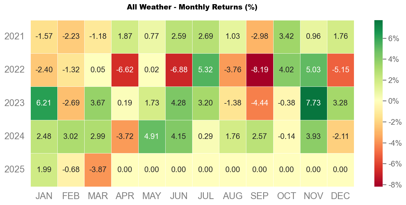 3 月沃勝全天候投資組合下跌 3.87%。當月以黃金 (GLD) 表現最佳,該資產上漲 9.4%。
