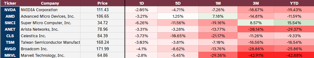 自 DeepSeek 出世以後,在算力及成本持續下降的背景,AI 模型彼此間開始激烈競爭,形成價格戰,對比過去兩年 CSP 業者大力投入的資本支出,對於是否能夠依靠 AI 業務回收足夠成本,自今年初以來市場便持續有 AI 泡沫的懷疑聲浪出現,從 1 月 Microsoft 的電話會議中亦提及,在下個財年 (2025/06) 開始,對於資本支出的成長年增率將開始放緩,2 月 Microsoft 取消了與至少兩家民間資料中心運營商達成的GW 容量的租賃合約,至最近放棄歐美資料中心的租賃,以及中國政府開始商研禁止中企業進口 H20 降規晶片 ( 很恰巧地,美國商務部也傳出考慮禁止出口 H20 至中企業 ),Nvidia 遭到兩國政府夾擊,或將影響 Nvidia 全年 8~10% 全球營收,多項負面傳言使得今年以來科技股持續遭到下修。