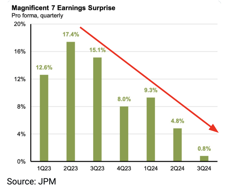 同時,Magnificent 7 平均財報超出預期的表現也從去年起便持續減緩,雖預計獲利成長率將仍高於 S&P 500 其餘 493 間企業,然而兩者的成長差距一直持續在縮小,當大型 CSP 業者的成長性相對整體市場已開始趨緩,雖並不直接影響到未來資本支出是否擴大或收縮,但就獲利角度而言,設置廠房的資本支出是會在未來分成好幾期攤提、折舊成本的,EPS 會受到這過去兩年大量資本支出的投入,增加折舊費用而受到影響,當然,如果這些資本支出得到更好的報酬、營運更具效率,帶動營收將驅動 EPS 持續上升,然而在 DeepSeek 出現後,算力成本的下降及價格競爭的激烈化,故事線及長線估值將備受挑戰,若這筆投資沒有帶來明顯的效益,將只徒增折舊費用,那 EPS 未來就會受到拖累。