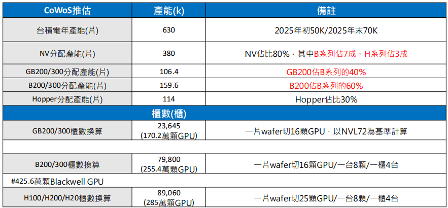 GB200 需求下修,3 月出貨正式放量:相同功耗下 Blackwell 比起 Hopper 提供 25 倍推論效能,搭配上 Dynamo 開源軟體,Blackwell 性能更來到 Hopper 的 40 倍。算力效能也達 1 Exaflops,並隨 Firnware 優化,帶動水冷板及水冷轉接頭組用量提升,儘管生產初期良率不佳,市場持續下修 25 年 GB200 出貨量,ODM仍於 3 月正式量產出貨 GB200,預期 25 年出貨櫃數約 2-2.3 萬櫃,部分需求轉至HGX B200 及 GB300。