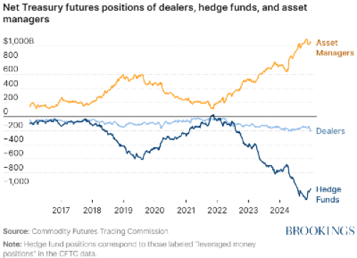 在 4/2 對等關稅上路前,對沖基金的「基差交易」規模達 1 兆美元,然而資本薄弱的對沖基金中,真正涉及風險、交易的僅有 10 家或更少機構,集中交易的情形相當及中,若出現問題爆雷,將撼動整個美債市場。