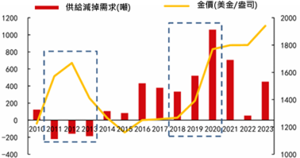 影響黃金價格因素複雜,且價格和供需關係較無關聯