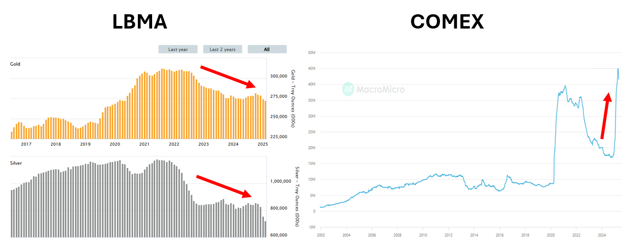 如果說 2024 年影響黃金最主要的因素是央行購買黃金,那麼在 2025 年起,上漲的動能因素開始轉為對實物黃金的的擠兌需求。