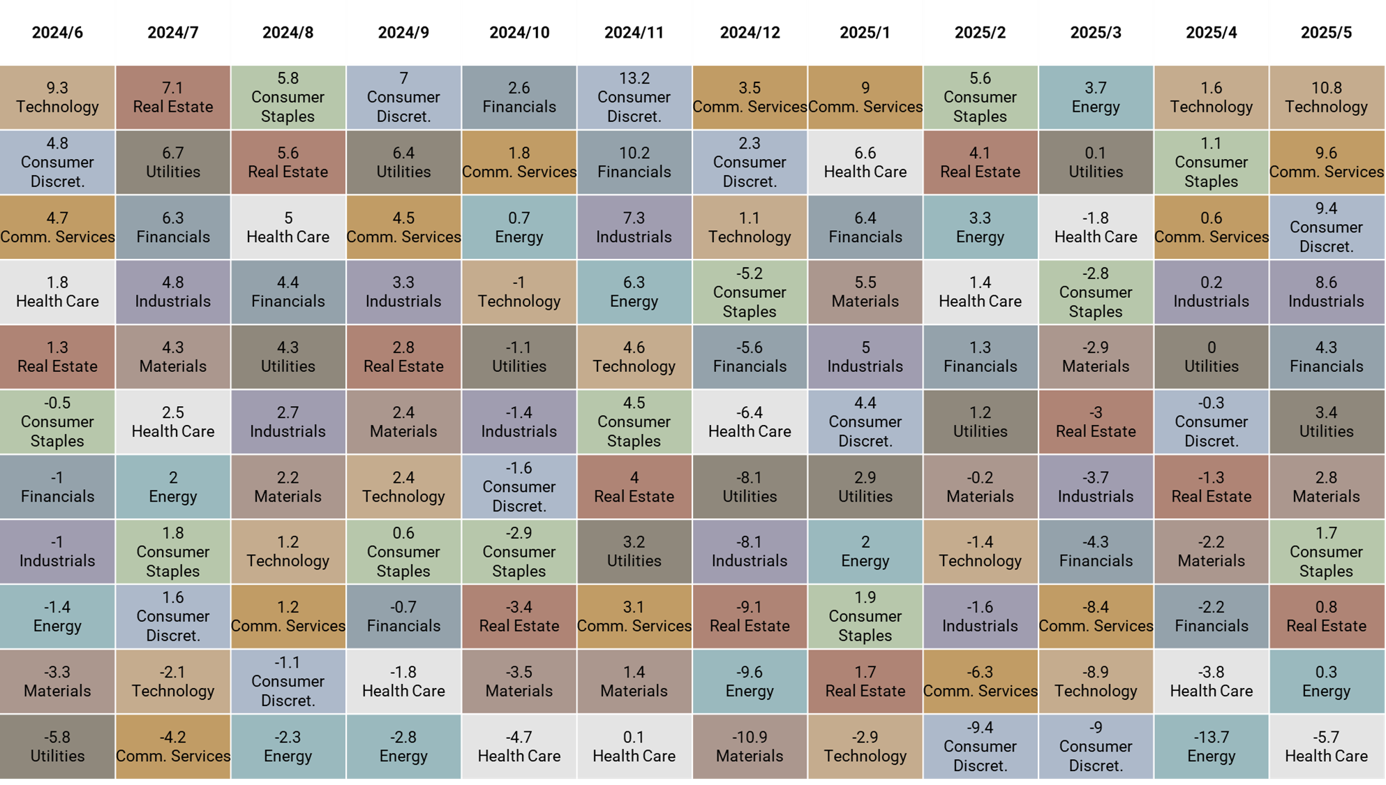 5 月資產表現以美國股市與已開發市場表現最佳,分別上漲 6.2% 與 5.7%;標普板塊以科技與通訊服務表現最佳,分別上漲 10.8% 與 9.6%。